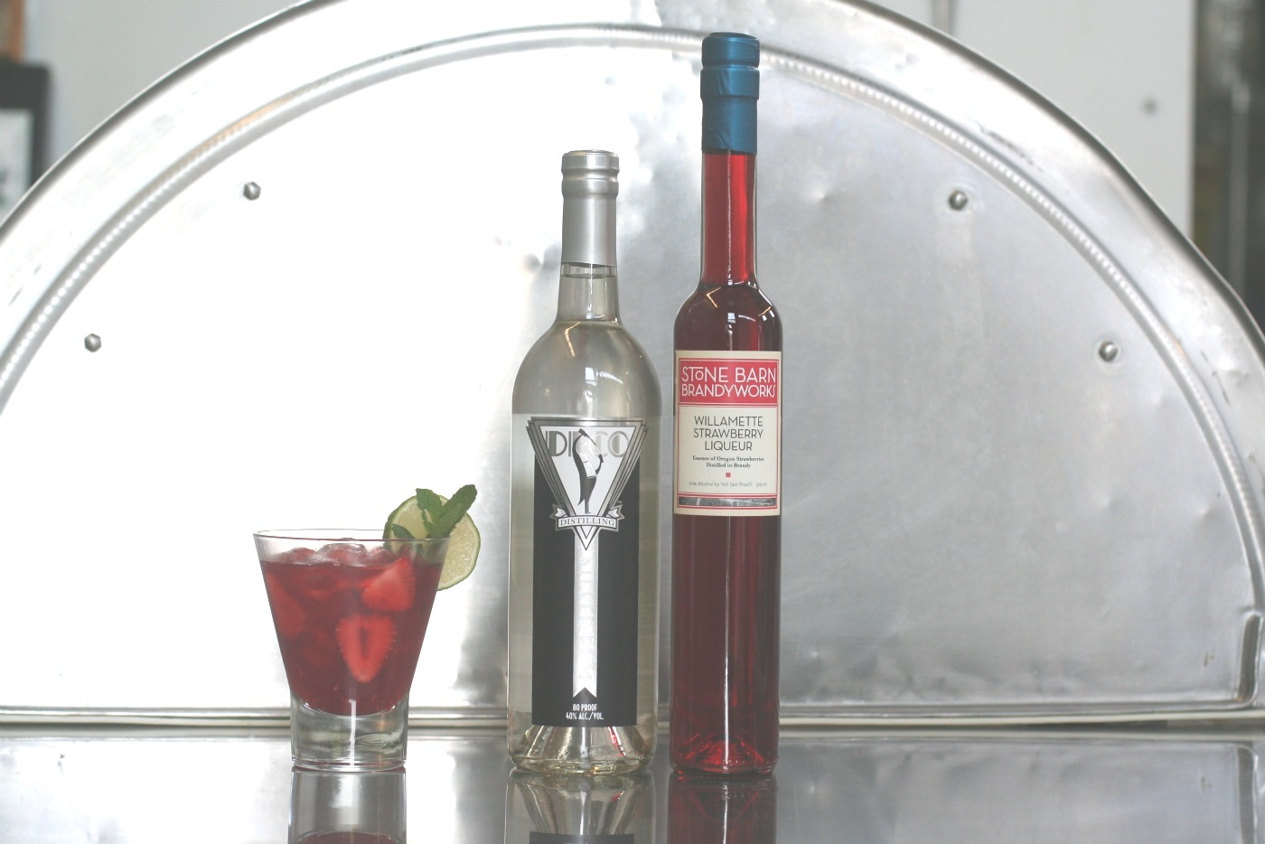 Our alcohol base is a sweet and fragrant Washington state Gewurztraminer wine which we’ve distilled into strawberry spirits, and then blended with the strawberry juice and cane sugar syrup. All the distillation has been done in our copper pot still, resulting in a product that our tasting room visitors have described as “summertime in a bottle”. We think the color, taste, and aroma capture the essence of the Oregon berries.