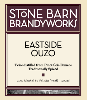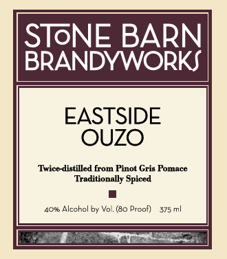 Stone Barn Brandyworks Ouzo was our reinvention of the spirit the Mediteranean- answering the question, how would we make a strong drink with only the local ingredients one might find on an island like Ikarria? We took grape pomace and made a rough grappa, then redistilled with a moroccan green anise and a touch of spearmint to fool your palate into thinking it was sweet.